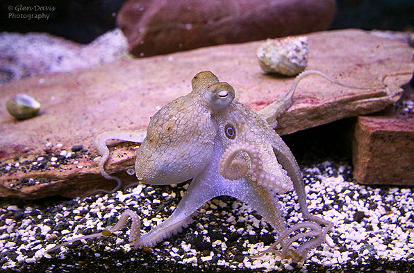 Its intelligence requires an enriched environment, that is lots of things to interest it in the aquarium. The simplest way to do this is to add lots of rocks and food grade quality plastic pipes of various diameters. The rocks should be glued into position to avoid landslides through the front of the aquarium as octopuses are very strong and like to re-arrange their own 'furniture'! The plastic pipes can be littered about the bottom of the tank. A large amount of shells and various small rocks should also be added as an octopus will appreciate being able to use them to make a door on its den. Caulerpa may also be used but avoid the temptation to add corals and anemones, they may sting the octopus but more likely, the octopus's activity will bury them.