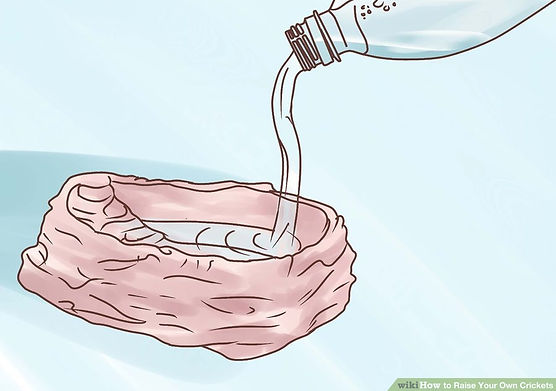 There is no need to add water to the container, as they should be able to source all their water from their food, especially if items like orange, apple or lettuce are a regular in their diet, but if you do prefer to give them something to drink just add a damp sponge or slightly soaked cotton wool to avoid the crickets drowning in a water bowl. Their water should be declorinated or bottled spring water.