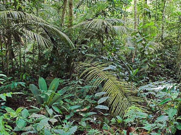 Herb layer in the rainforest, habitat of various dendrobatids. Province of Loreto, Peru.