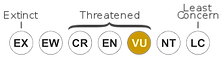 Classified as endangered in the Red List, as the range extends only to an area of 20,000 square kilometers. Clearing and agriculture endanger the occurrence considerably.