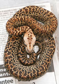 The Granite Burmese Python is the latest pattern morph to become available in the hobby. This morph was first produced in the US by Bob Clark in 1999, along with the Albino Granite. One of my favorite things about these guys is their heads. They have a much reduced arrow shape on top of their head, and the overall color of their head is a light cream color. This pattern mutation is very unique in that some individuals can have a full granite pattern, and other can have what is called a reduced pattern. The ones with a reduced pattern have areas on their body that don't have the granite markings. I really like both varieties of this morph, but I have more Adult granites with the reduced pattern for my breeding stock. While I would have expected to produce hatchling similar to the parents, I often produce granite babies that have the full granite pattern . Pictured above is a reduced pattern granite on the left, and full pattern granite on the right. The granite Burmese Python is a awesome snake and my breeding stock is quite remarkable.