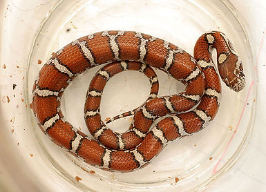 All milk snakes are rodent feeders, but the babies of some of the smaller subspecies, such as the eastern and Central Plains milks, may require that their meals be scented with a lizard. Unless you have lizards available for scenting, I recommend you stick with the more commonly kept subspecies that will readily accept thawed rodents, such as the Honduran, Pueblan and Sinaloan milks to name a few. The majority of adult milk snakes will eat frozen/thawed mice, with the larger subspecies taking small-to-medium thawed rats. We feed our adult females twice a week during the breeding season to help ensure good body weight for egg production, but our males and babies, as well as off season feedings, are one good meal per week.