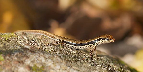 The Streamside Skink inhabits the vicinity of streams and small rivers in lowland and hilly areas. It can be found foraging amongst rocks and vegetation right at the waters edge.