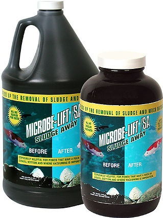 Formulated for the removal of organic bottom solids that are slow to degrade, especially helpful in ponds that have a rock or gravel bottom or where vacuuming is impractical. As organic solids accumulate on the pond bottom, they begin to break down releasing toxic gasses. These gaseous by-products can endanger fish, marine life and plants. Microbe-Lift Sludge Away reduces and eliminates potential harmful gaseous compounds and helps clarify your pond water at the same time.